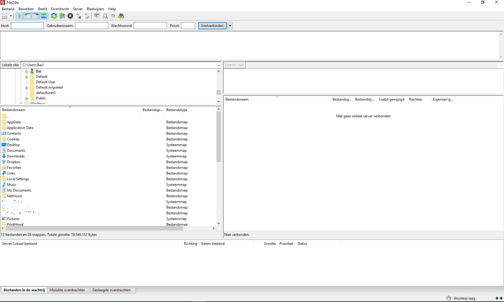 Zodra U op Snelverbinden klikt ziet u als het goed is het volgende scherm. Nu heeft u een succesvolle en actieve FTP verbinding opgezet!